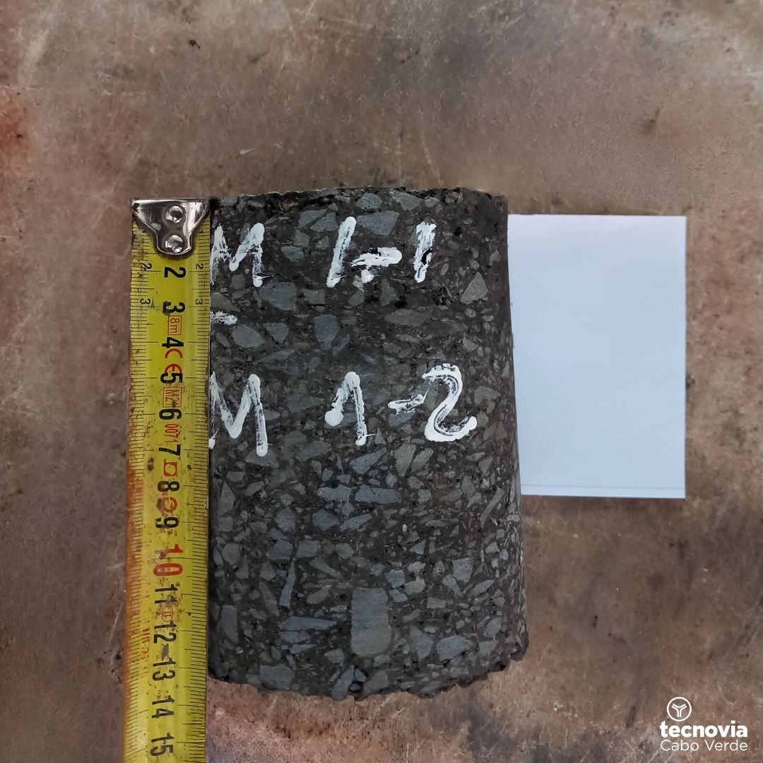 In partnership with Tecnovia Cabo Verde, we developed a comprehensive testing programme that included 46 load tests to determine the bearing capacity of the pavements, as well as a complete characterisation of the soils through consistency limits and SPT tests. The extraction of 61 cores from the bituminous layers allowed us to reconstruct the layout and construction history of the pavements, providing essential data for defining appropriate technical solutions.