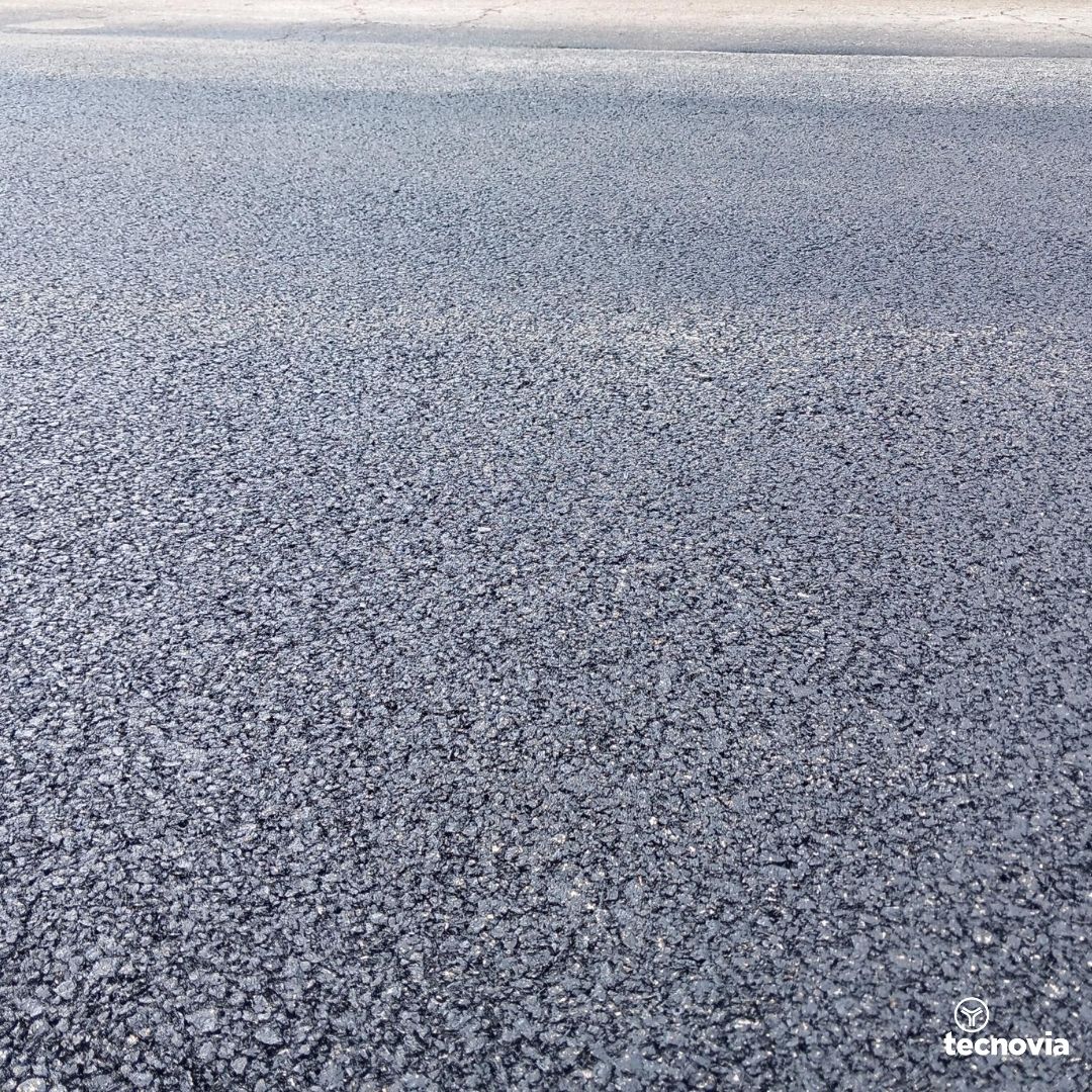 In addition to the usual controls during execution — granulometric analysis, core extraction, macrotexture determination — we collaborated directly with the designer in developing an appropriate methodology for determining the binder percentage, considering that rubber behaves differently from conventional bitumen. The testing programme also included the evaluation of resistance to fatigue and permanent deformation, parameters that were significantly improved by the presence of rubber in the composition.